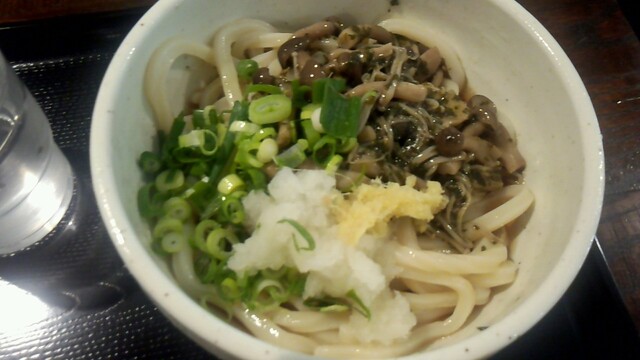 この日は、「ねぎうどん」を注文。基本500円に大盛50円増しで550円。