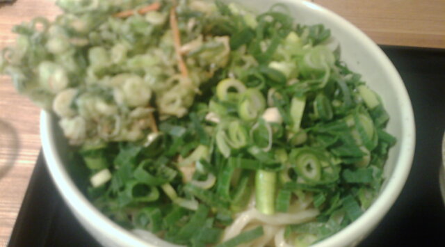青ねぎのシャキシャキした食感が存分に味わえるのが嬉しい。しかも、ねぎの持つ甘味と辛味が口の中で混ざりつつ、結局は甘味が勝るのを感じる。しかも、うどんの上の青ねぎとかきあげの青ねぎの2種類の食感を楽しめるのだ。食べ終えたら口臭がやや気になるほどではあったが、存分に美味しいねぎを食べられた満足感に満たされる。青ねぎがこれだけ大量にのせられていて、かけうどんのわずか50円増しというのが嬉しい。
