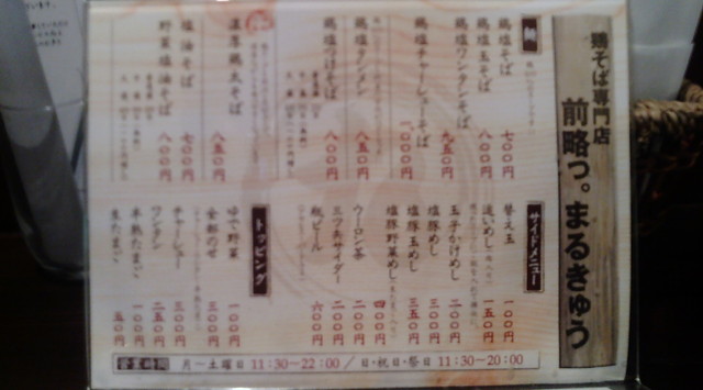 鶏そば専門店前略っ。 つけそばまるきゅう メニュー