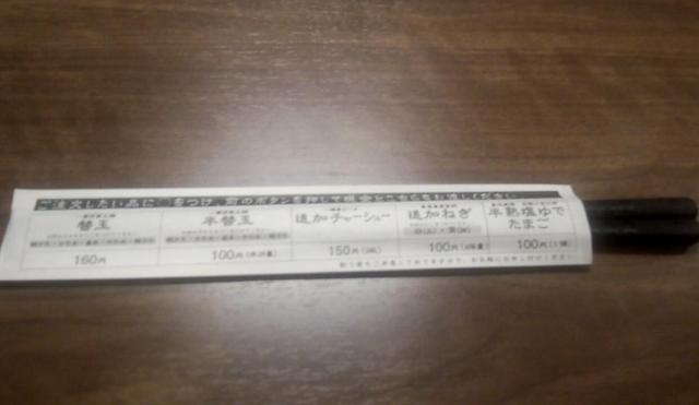 替玉は事前に券売機で食券を購入することもできるが、テーブルで追加料金を支払うことでも対応可能。その場合は箸袋が食券代わりになる。
