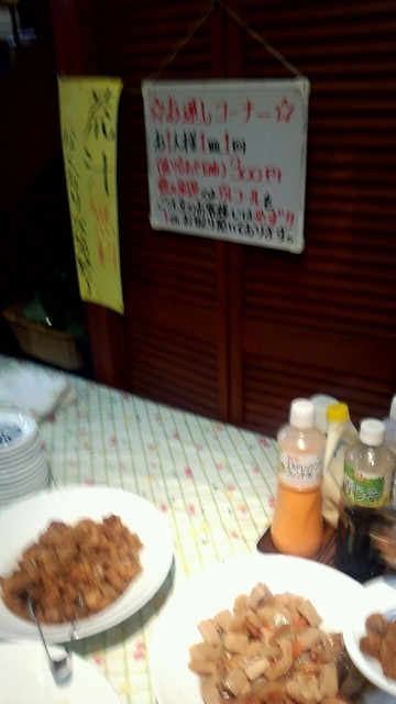 お通しは強制的に300円つけられているが、このお通しが何とビュッフェ形式。入口近くのビュッフェ台から、練り物やひじき、マカロニサラダなどを自分で好きなだけ皿に盛って席に持っていく仕組み。なお、お替りはできない模様。