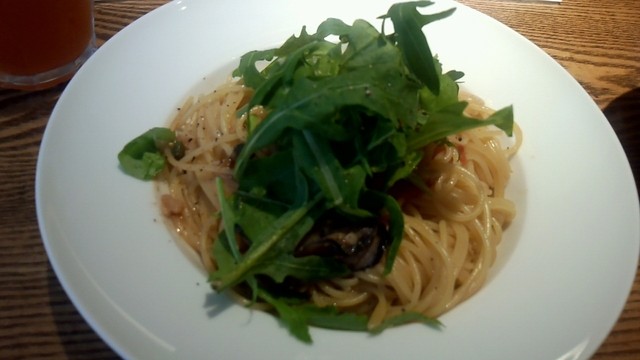 この日は、「人気」と書かれていた牡蠣とルッコラのフェデリーニを注文。パスタ大盛無料とのことだったので大盛にしてもらった。