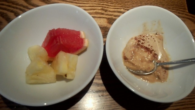この日のデザートは、塩キャラメルのパンナコッタ、パイナップル、グレープフルーツ。