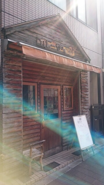 鉄筋の建物の1階にある店で、壁を丸太調にしてログハウスっぽい温かみを演出している。「カレーやさん」という看板の文字も親しみやすさを演出する一要因になっている。