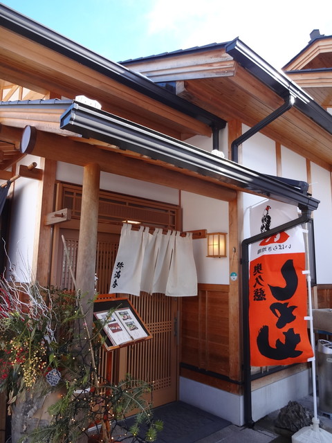 ちょっと寂しい商店街を暫く進んだ所にある店。駐車場完備で、駅前から進んで行くとこの駐車場が目印になる。建物は白木と白壁という純和風な作りだが、老舗の風格というよりはフレッシュな印象を受ける。