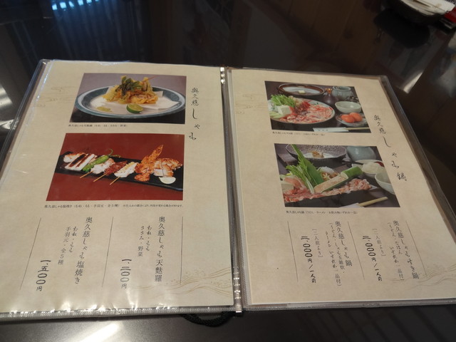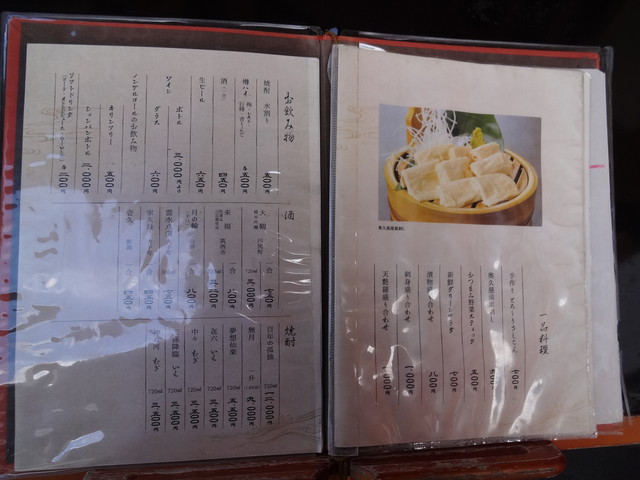 メニューは、「奥久慈しゃも天麩羅」1,200円、「奥久慈しゃも塩焼き」1,500円、「奥久慈しゃも丼」1,200円(「極み」は1,800円)、「奥久慈しゃも鍋」2,000円といった奥久慈しゃもを使った料理が中心ではあるが、天麩羅や鰻重、各種一品料理もあるし、こうなると欲しくなる日本酒や焼酎も取り揃えている。