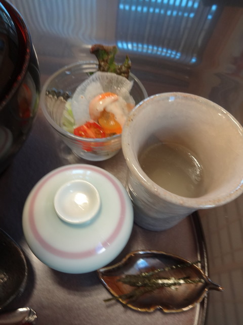 スープは鶏ダシがしっかり効いたもので、塩分が控えめだったこともありダシの味が染みる。サラダはサニーレタスやミニトマト、大根のスライスなどが入ったミニサイズ。茶碗蒸しはまあ普通。