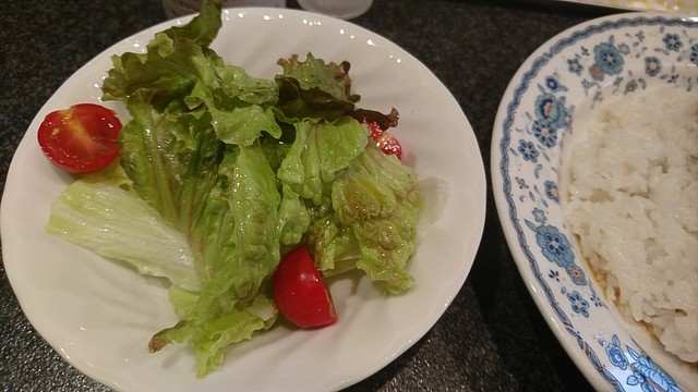注文から4分後、ラム肉カリーのご提供。一緒にサラダも運ばれる。