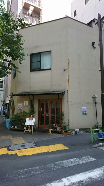 交差点角にある店で、昼どきは店外に行列ができていることもありよく目立つ存在。木の引戸以外は殺風景なファザードだが、「鳥」の字がイラスト化された小さな看板、それに入口付近に並べられた植木の緑に粋を感じる。