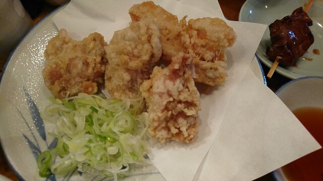 この日は、客の大半が注文していたからあげ定食を注文。隣の客に倣ってレバー1本を追加した。計1,040円だったので串は1本160円という計算。