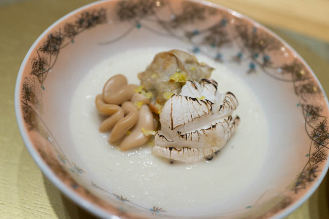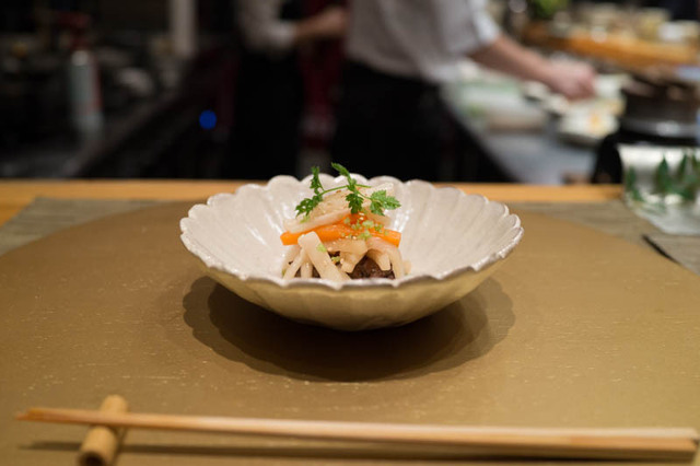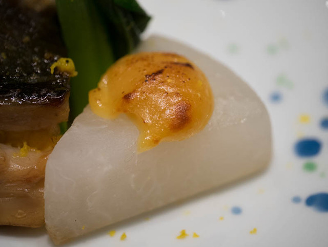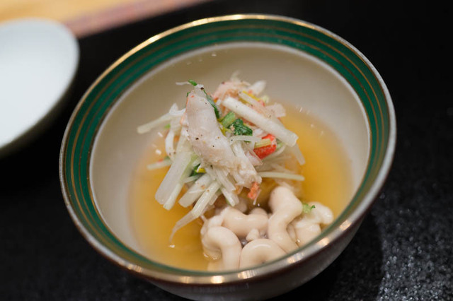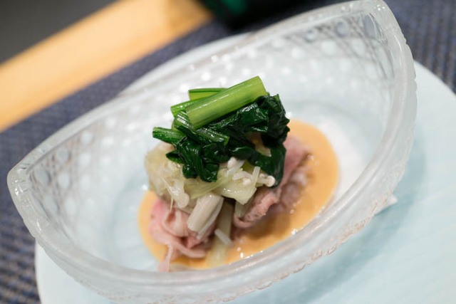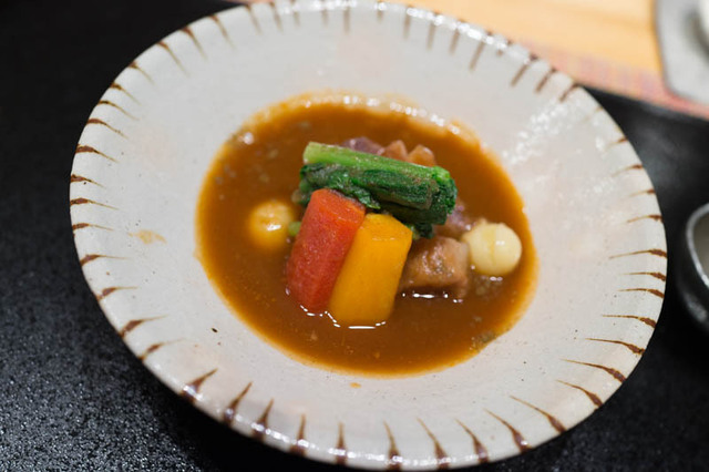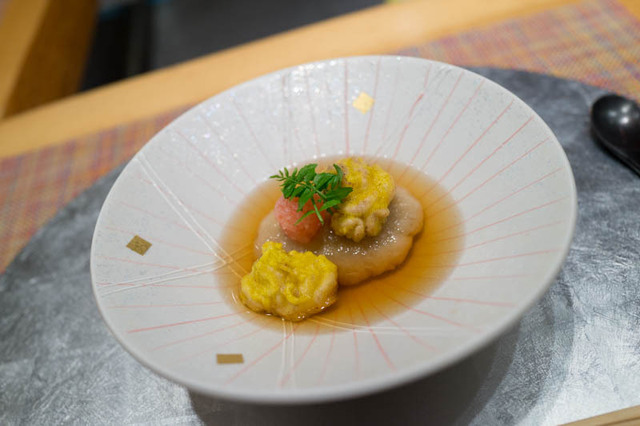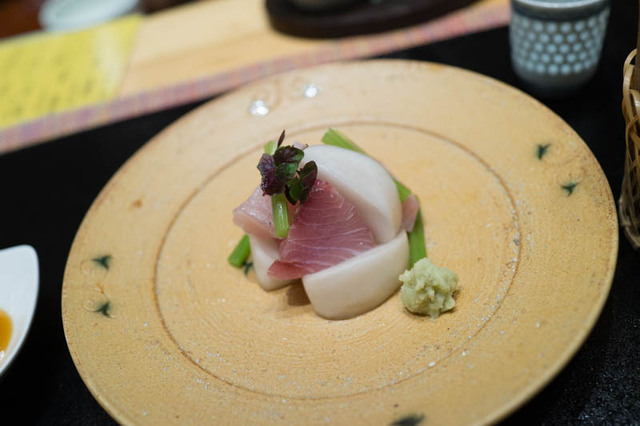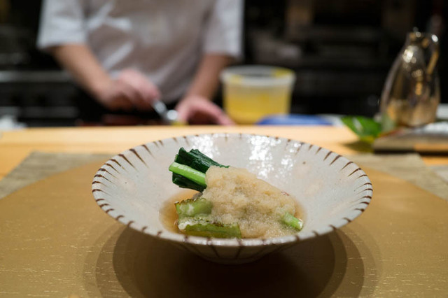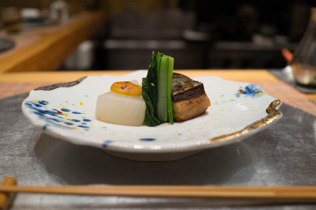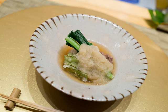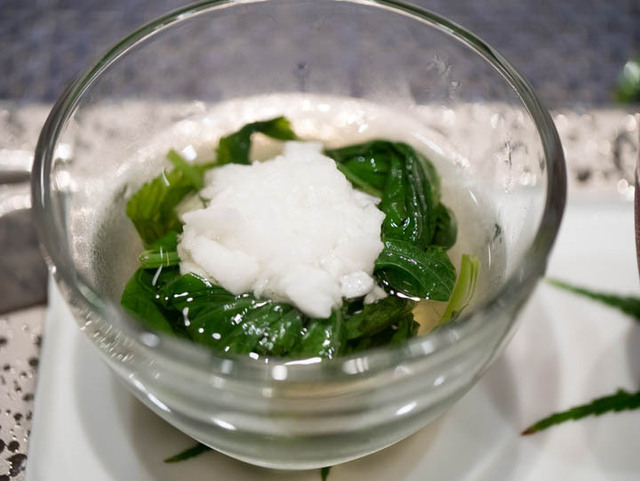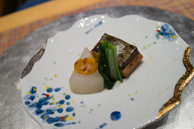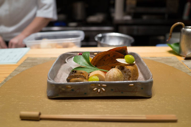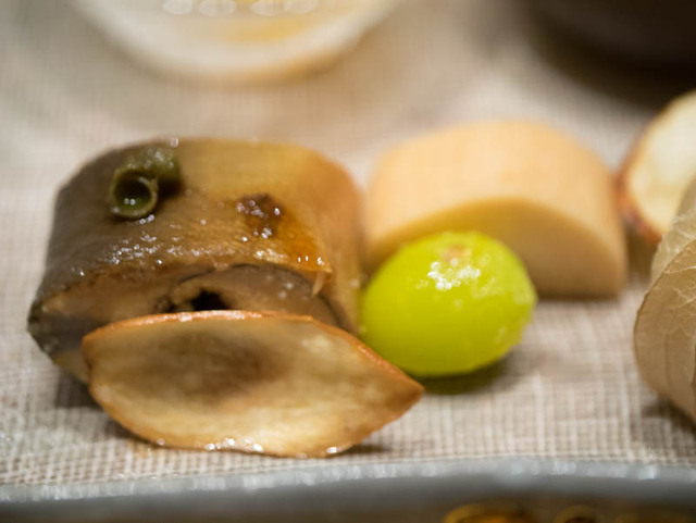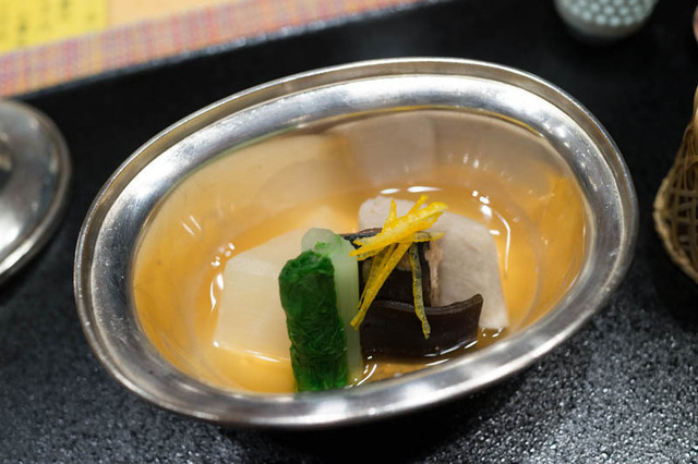 鰊、海老芋、天王寺蕪、芯取菜の炊き合せ