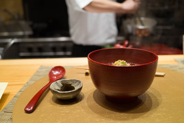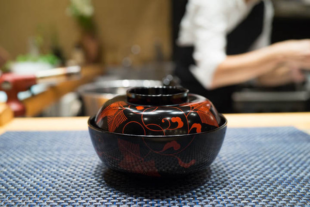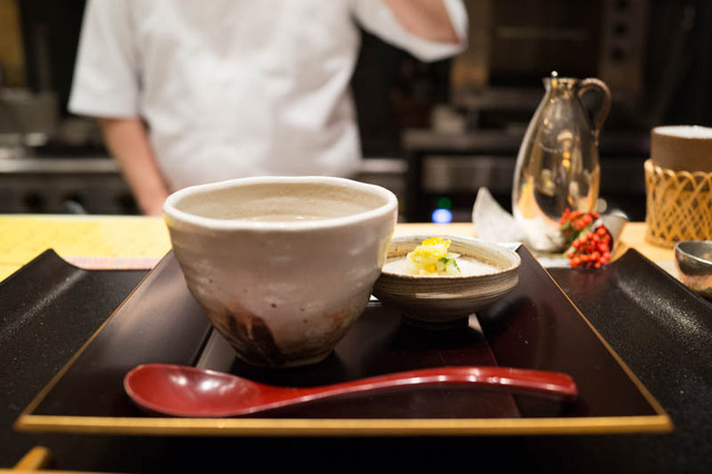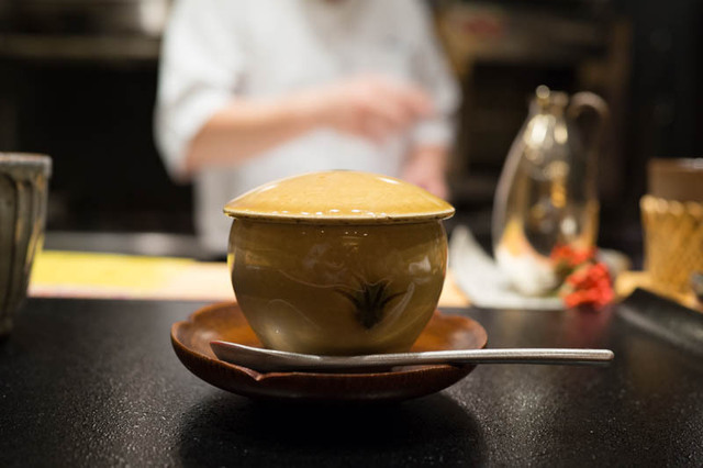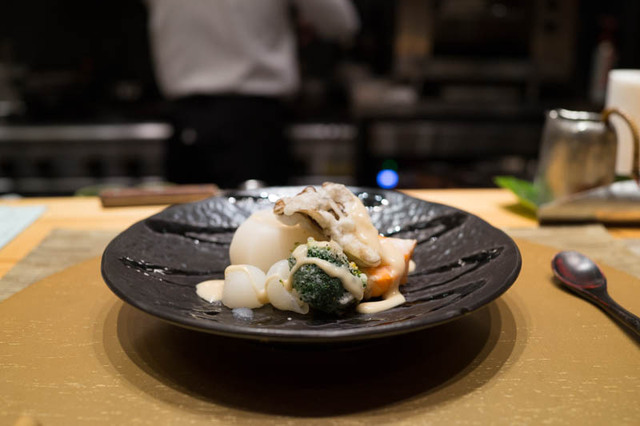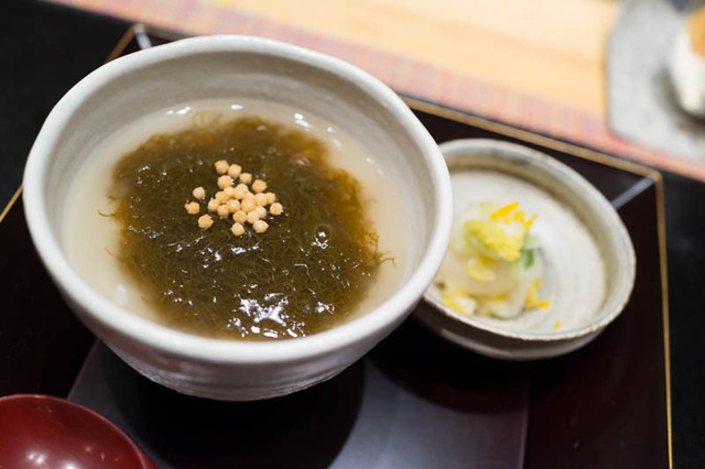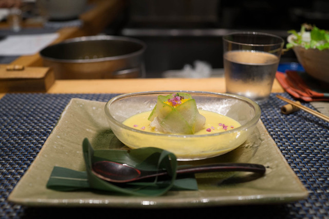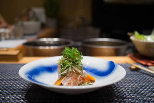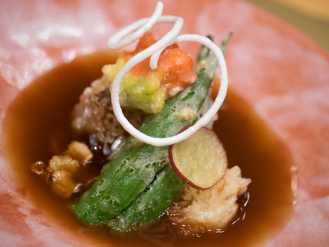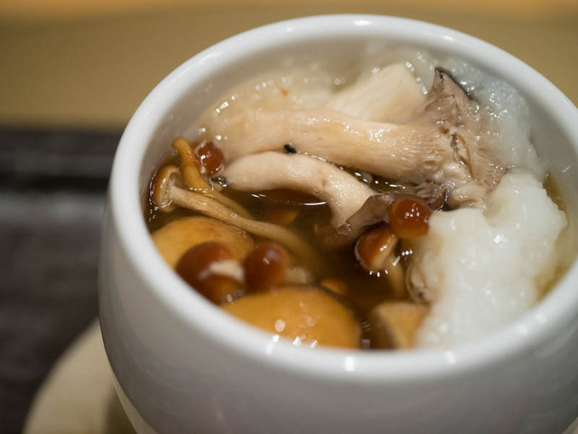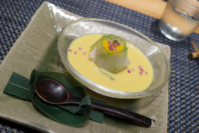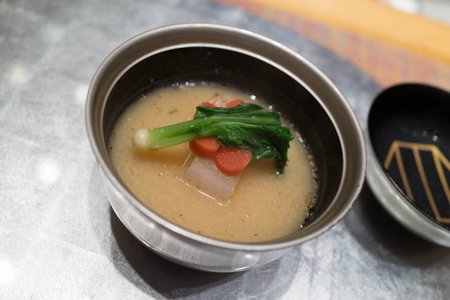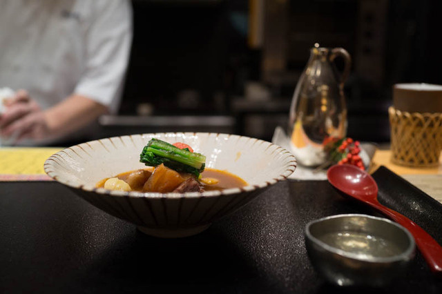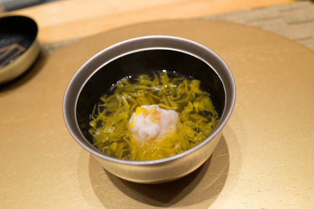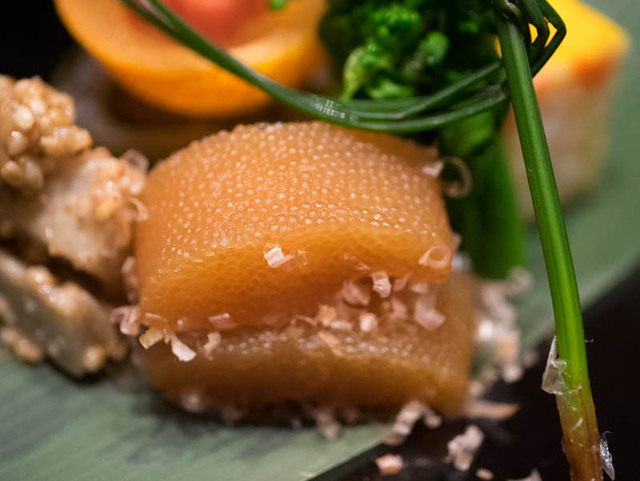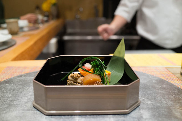 鰊、海老芋、天王寺蕪、芯取菜の炊き合せ