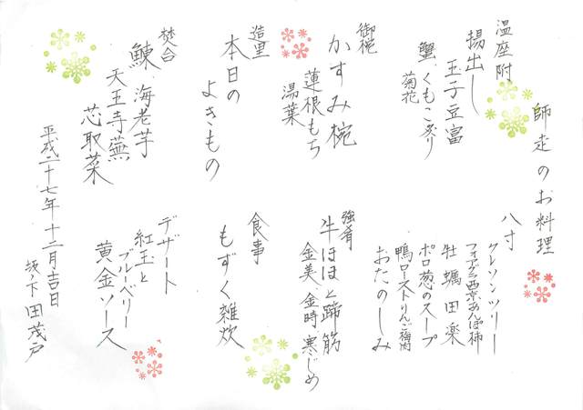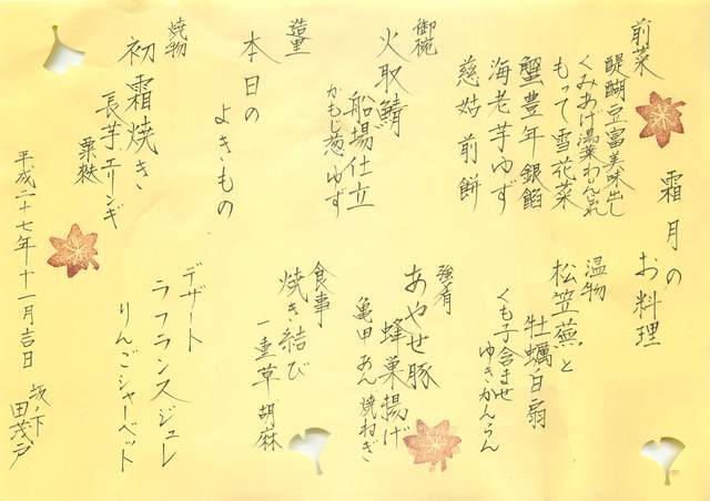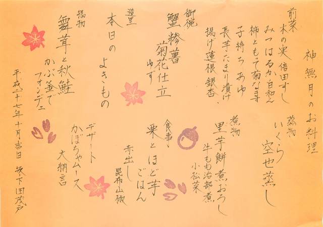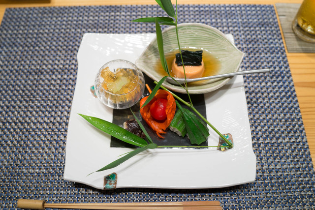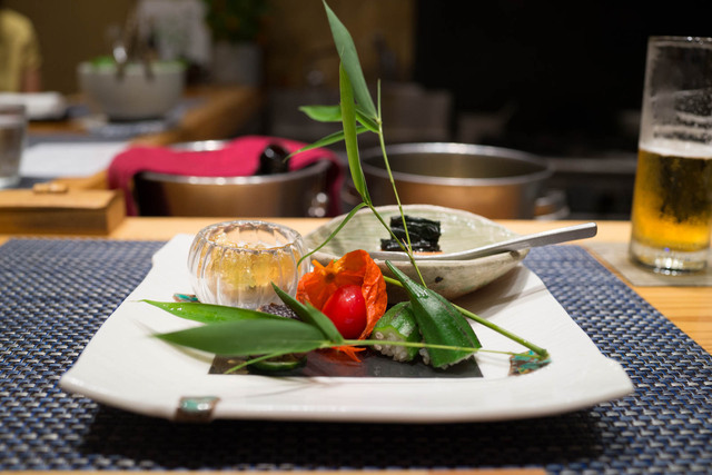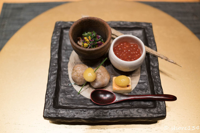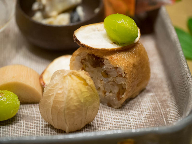 鬼灯、木の実信田すし、揚げ蓮根銀杏