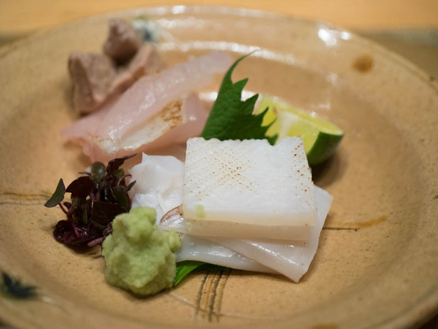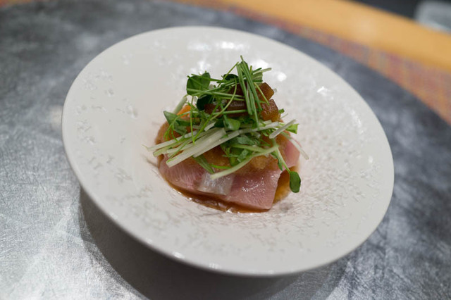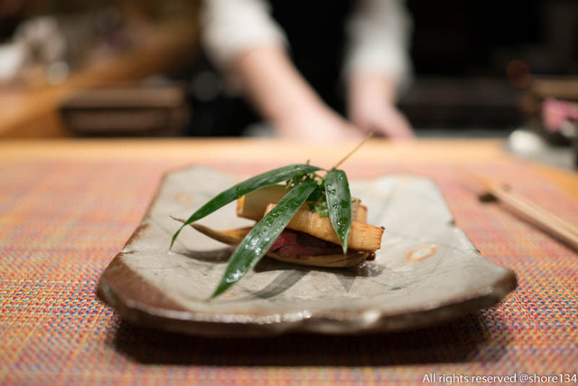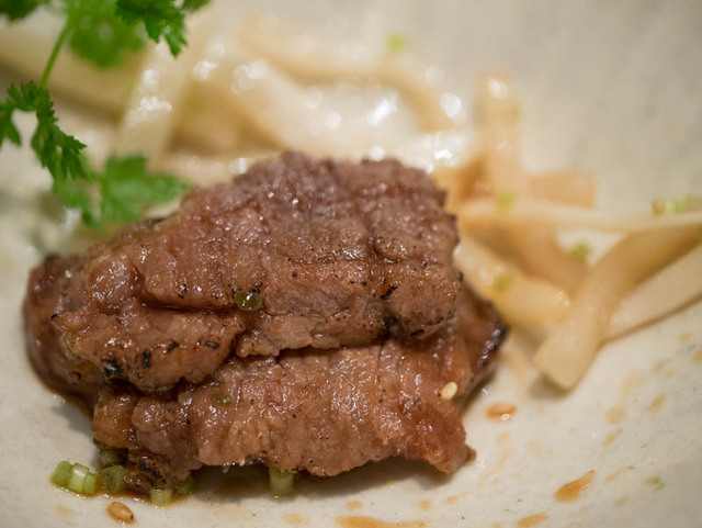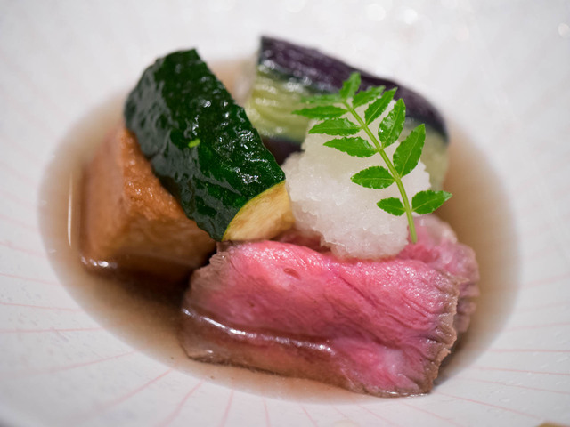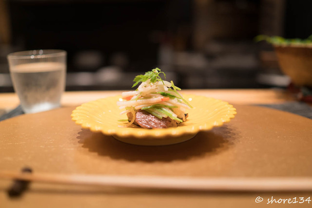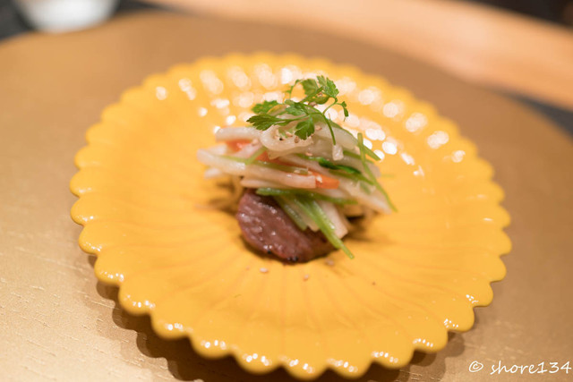 強肴、牛もも炙り、塩きんぴら、チャービル