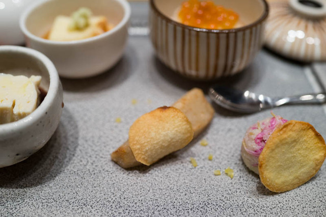 海老芋ゆずと慈姑煎餅(くわいチップ)