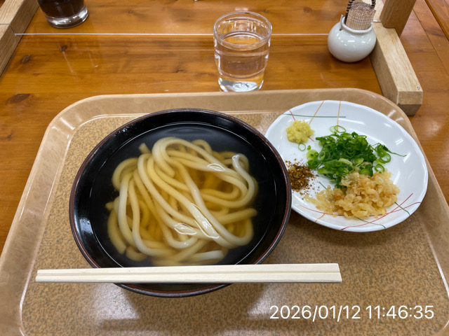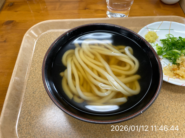 2012.1.12(木)14時 釜揚げ湯抜きで、かけ大320円!驚きの美味しさ(@_@;)