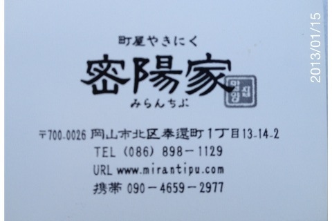 2013.1.14(月祝)兵庫駅のポッサムチプで名刺もらいました。近々伺います、楽しみ(^_^)