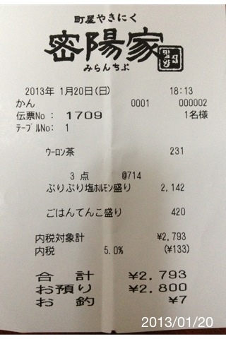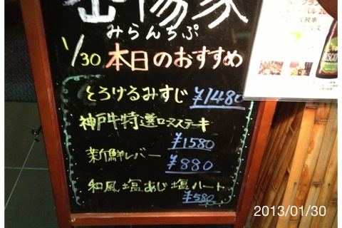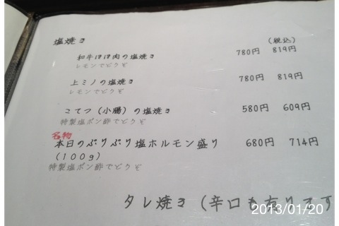 2013.1.20(日)17時 1名予約 塩ホルモン盛り合わせ715円\(^o^)/