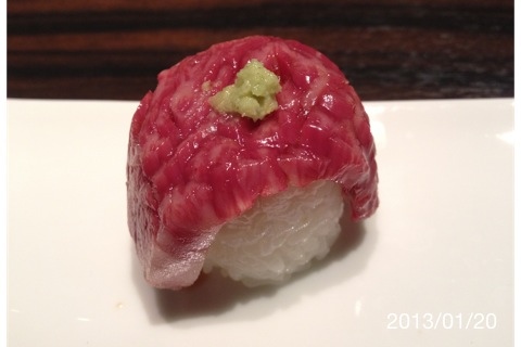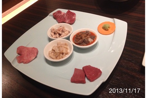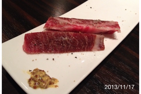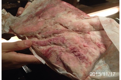 2013.11.17(日)19時半予約おまかせコース4000円 熟成肉は好みではなかった。