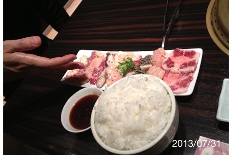 2013.8.10(土)今日もお一人様ホルモン盛合せとご飯大 至福のひと時ありがとうございました。