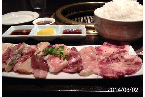 2014.3.2(日)17時予約 醤油屋定食(塩ホルモン2人前とてんこ盛り飯で約2000円)