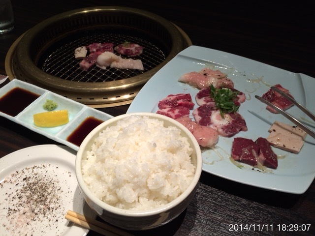 2014.11.11(火)3周年おめでとうございます\(^o^)/醤油屋定食は塩ホルモン3人前とてんこ盛り白飯2700円