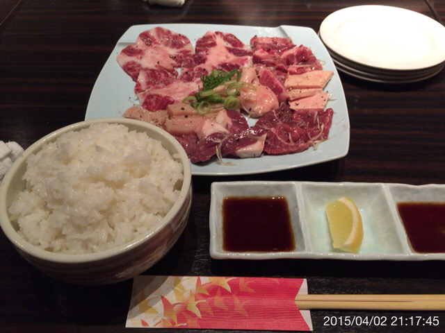 2015.4.2やっぱコレ!いつもの塩ホル盛り3人前と美味しい白飯てんこ盛り