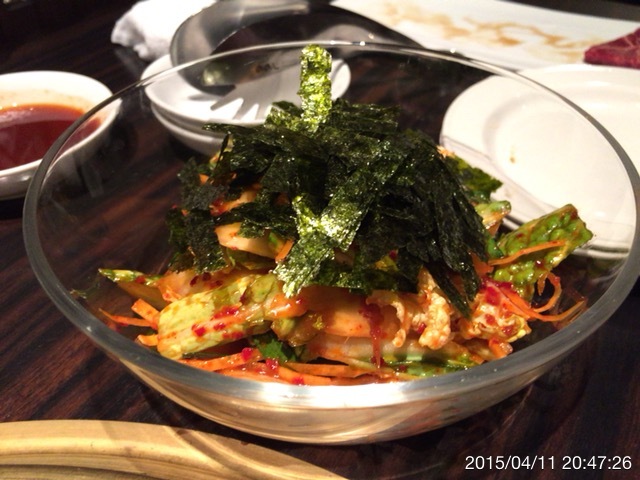 2015.4.11(土)20時半 オーナーお誕生日おめでとうございます。この出来たてキムチ美味しいよ!d(^_^o)