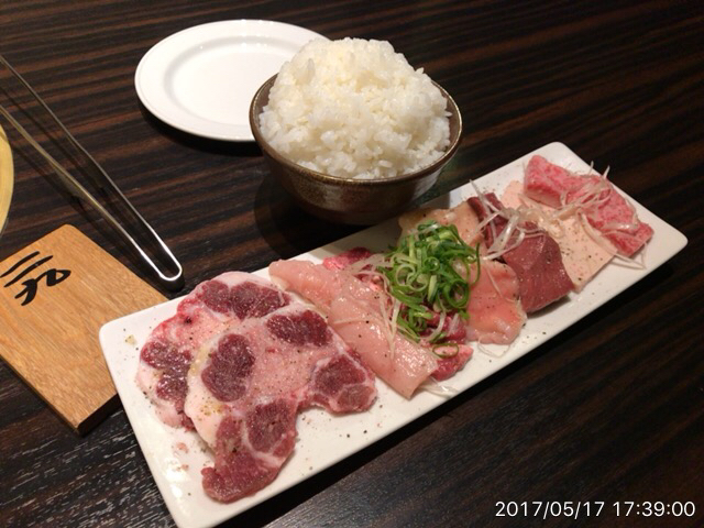37回目 2014.8.29(土)塩ホルモン盛り合わせ2人前に追加一人前と、てんこ盛りご飯d(^_^o)幸せ