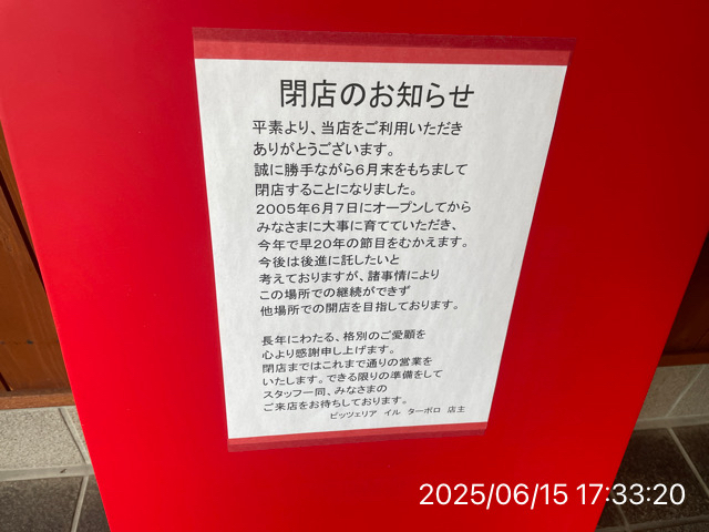 メモ 12時半イル・ターボロ→13時半十字屋商店→チキンショップ まつおか14時