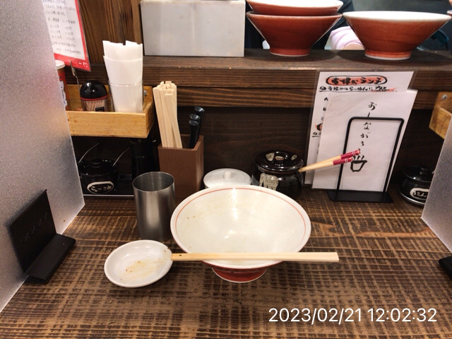 本日ラーメン2軒目ながら、スープ一滴すら残さず飲んでしまう。