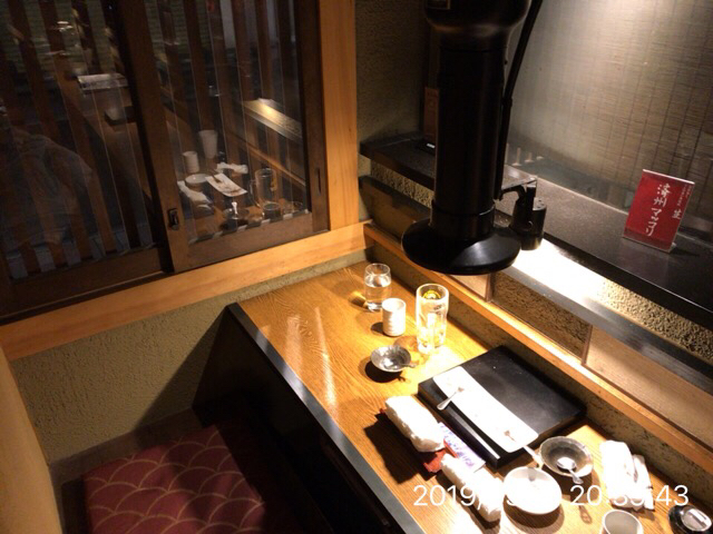 今日は一人なのでカウンター席で、和牛ハラミ甘タレ1058円、塩ホルモン盛合せ734円二人前と、