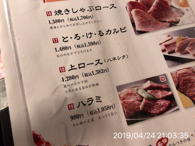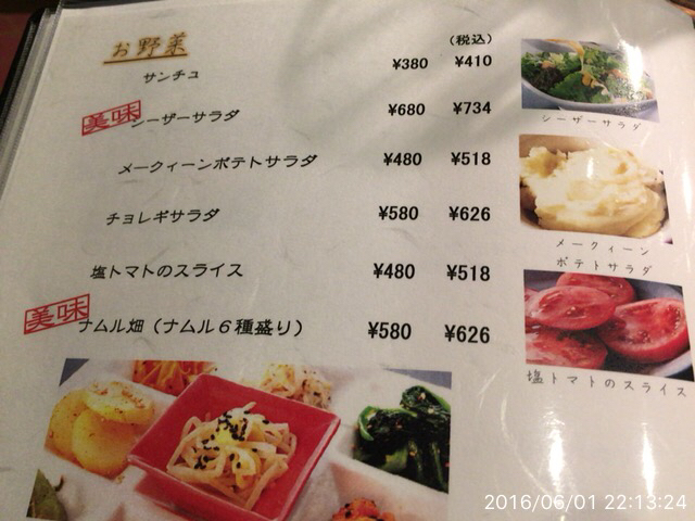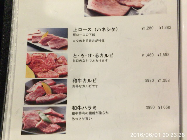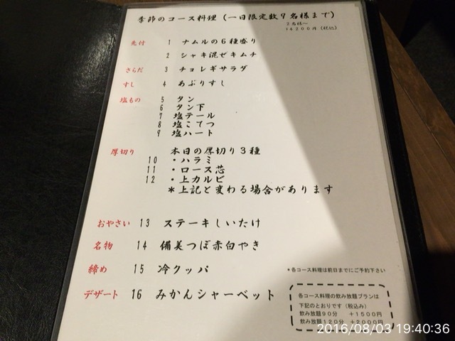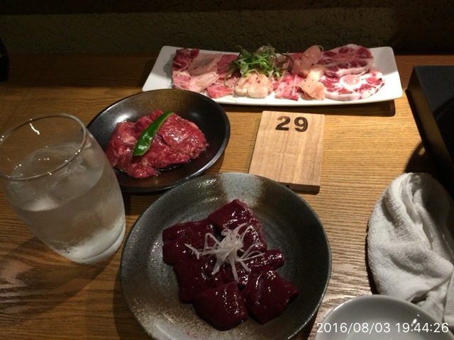 ⑥2016.8.3(水)19時半 私、夏風邪らしき体調不良になってしまい、一ヶ月振りの焼肉。