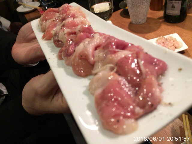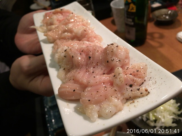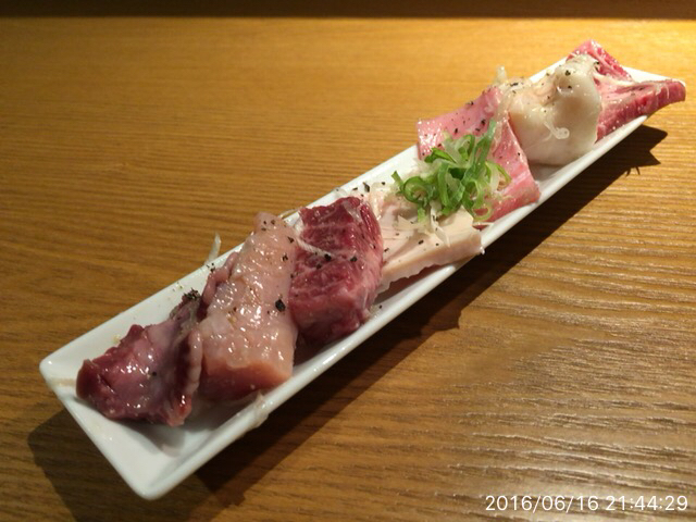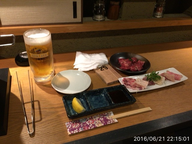 2016.6.11(土)17時 カウンターでタレハラミ、塩ホル盛りd(^_^o)ごちそうさま