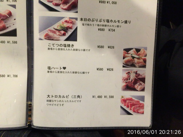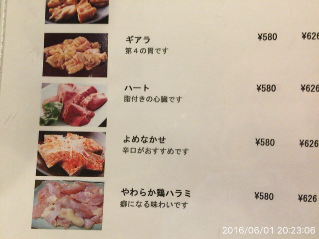 2016.6.4(土)19時半 再訪 前回美味しかったハラミが食べたくて来ました。