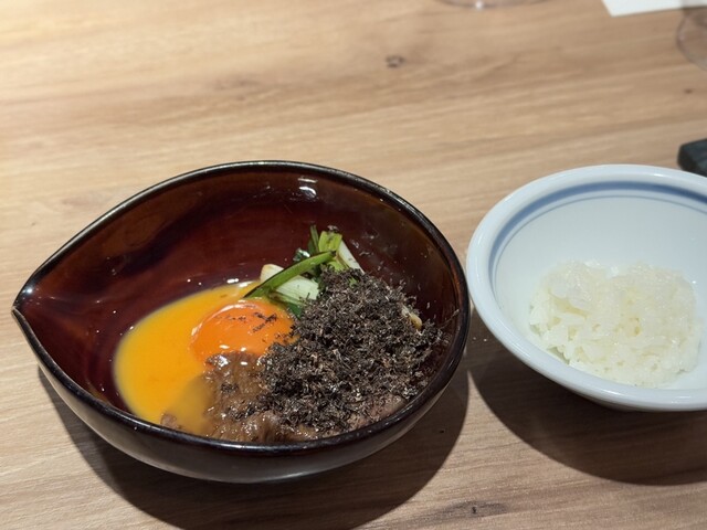 キャビアとユッケを合わせて食べると、生臭さはまったくなく,程よい塩味とまろやかさでおいしいです。