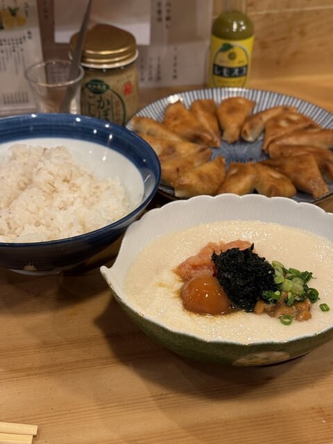 「全部のせ」にはとろろ、明太子、納豆、海苔、卵黄醤油漬け、が載っています。