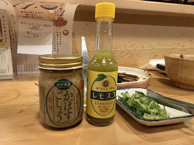 また、調味料として「かぼすごしょう」、「レモスコ」、ネギ、が提供されました。