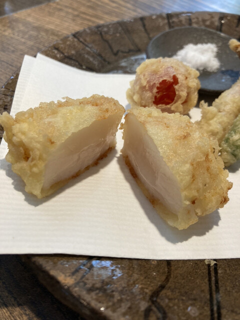 天ぷらが本当においしくて感動‥!ホタテの中が半熟で、絶品‥!