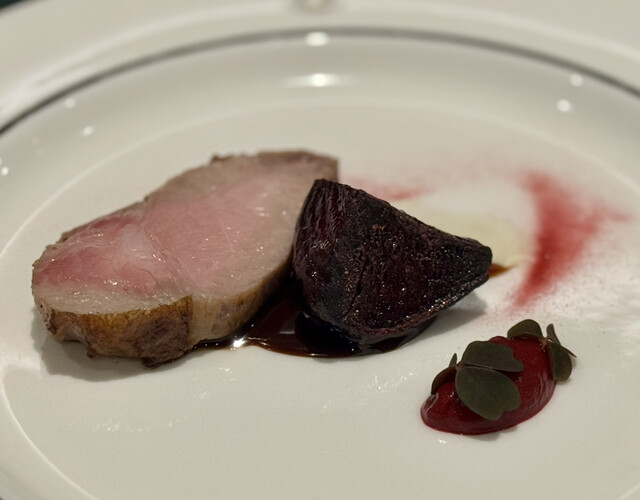一品です。付け合わせにはビーツを使っていて、