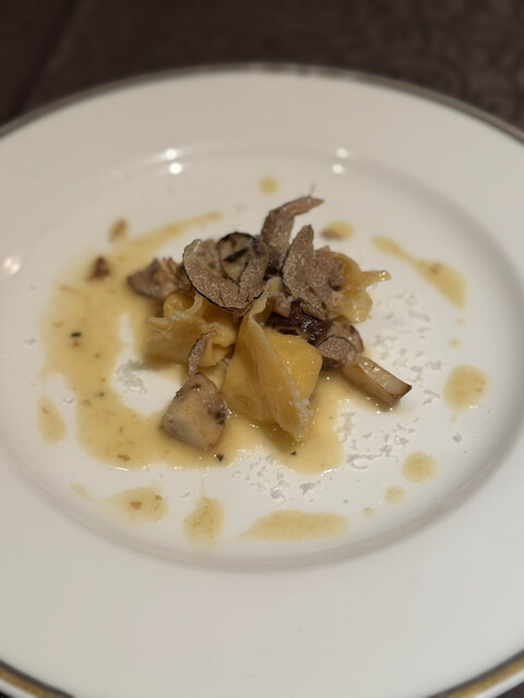 パスタで、中の詰め物はホロホロ鳥のラグーに