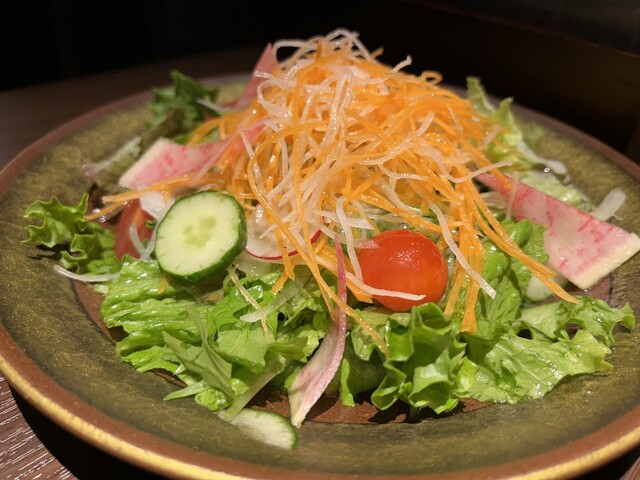 鮮やかなサラダ。盛り付けが可愛らしい。少し酸味の効いた、さっぱりしたドレッシング。