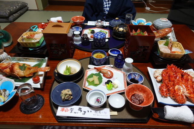 ② 花咲蟹が一杯ついてきます。が、今回、道東に来て思ったのは、花咲蟹って、身は淡泊でそんなにおいしいものでもないんだね。で、この量を食べるのは結構大変。一方、ご飯は、もち米のおこわがついているだけで、お櫃でのご飯の提供は無い。 私は、この大量の花咲蟹は、ご飯代わりに食べるんだと解釈して頂きました。 最後まで、花咲蟹を残すとしんどいと思います。最初から、少しずつ食べるのがいい。