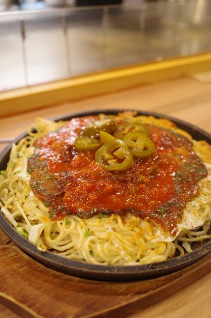 中町通りを歩いていると、鉄板の焼ける音と香ばしいソースの香りに、ふと足が止まる。