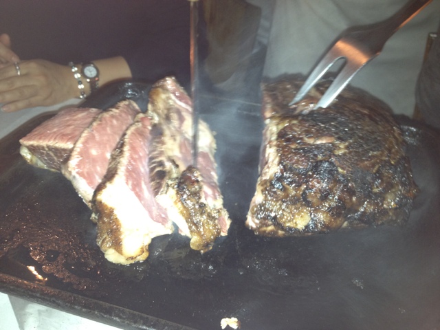 こんなに大きいお肉を女性4人で食べれるだろうか・・・と心配していたのはつかの間、お肉が美味しかったので、お肉を追加オーダーしました。お肉は大きい鉄板に乗せられジュージューいいならがテーブルに運ばれてきます。熱々の鉄板の上でお肉をカットし、お好みの焼き加減に。取り皿もひとりひとり自分の小さな熱しられたプレートを用意してもらせるので、焼き加減が足りない方は自分のお皿で焼き加減を調整できます。