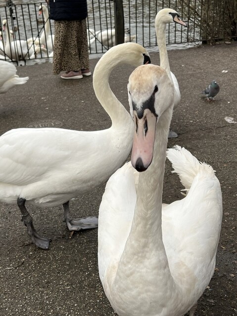水鳥たちにご飯をねだられます(1ポンドで餌を販売しています)