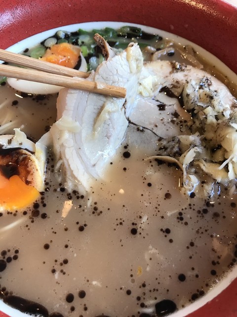 スープを一口。すっきりしているというか薄い...確かに豚骨だけれども。マー油らしきものも入っているがそれほど香ばしさは感じられなかった。