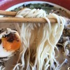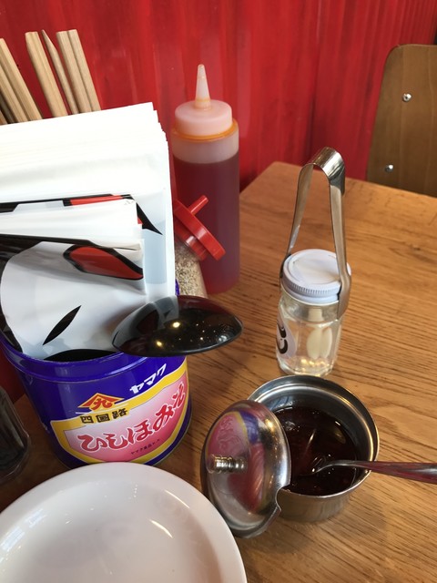 麺は低加水で、茹で加減も悪くなし。チャーシューはバラ肉ロール厚め切りでこれが美味しかった。メンマと生姜は同じような色をしていて間違える(笑)生姜はテーブルには置いておらず。