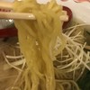 スープを一口。魚介系の味は深いのだけど、ムール貝かと言われるとわからない....(笑)それよりも鶏出汁がしっかりと下支えになっていて旨味が伝わるのに驚いた。少しオイリーだが熱々のままいただけ、揚げネギから香りがするのも良かった。