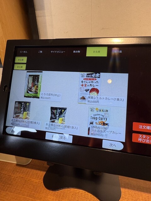 慣れたもんでタブレットをいじって味噌ラーメン1000円をオーダー
